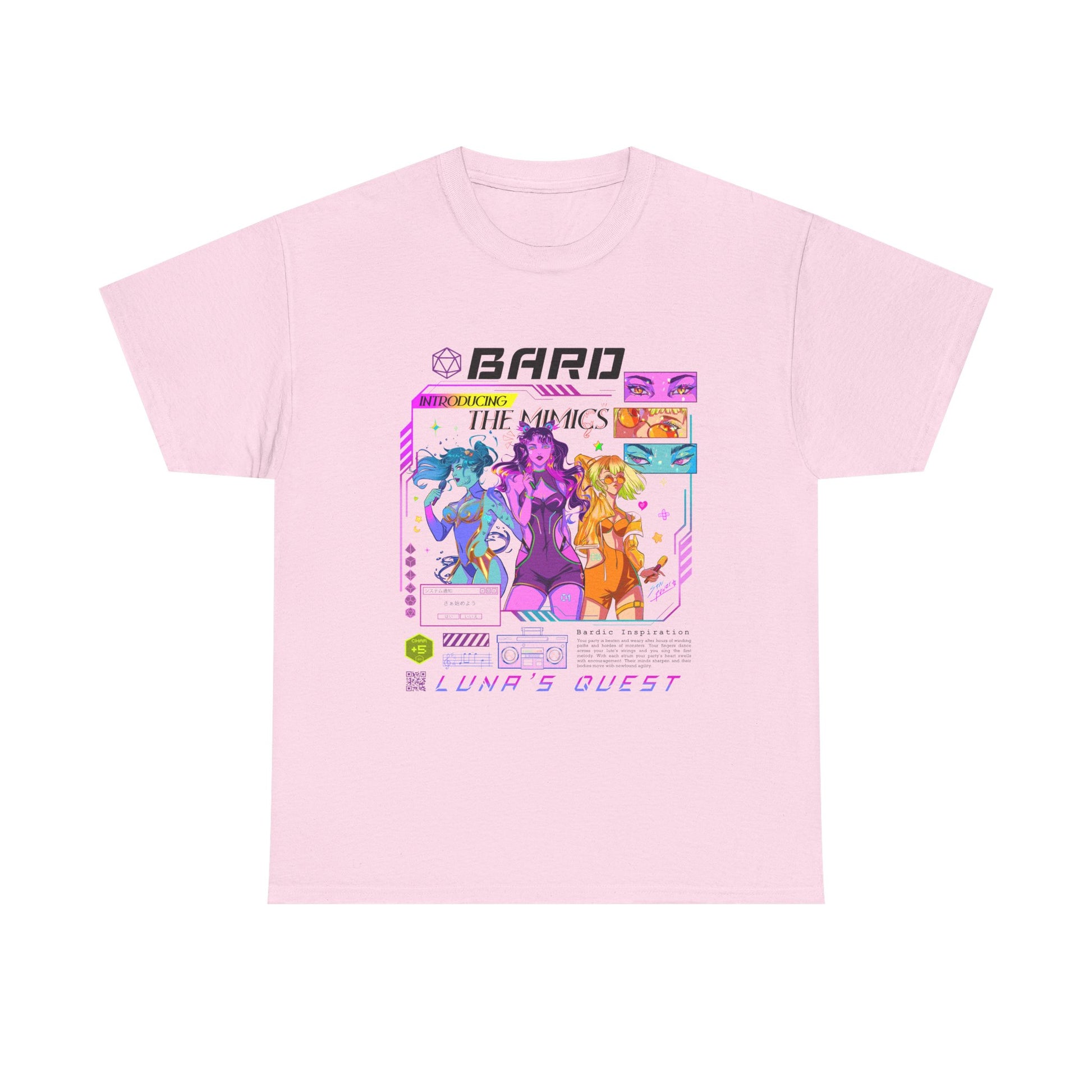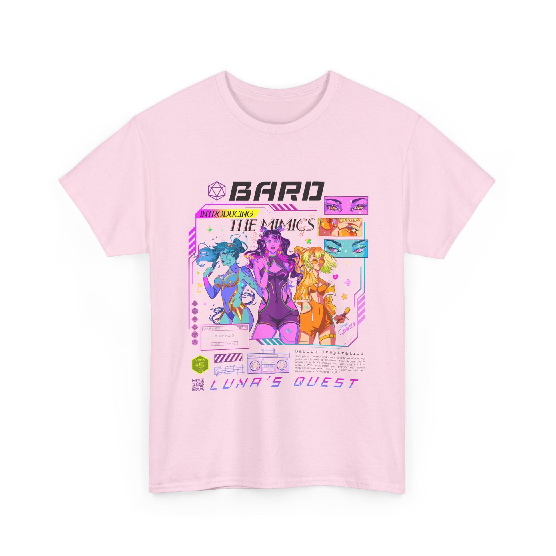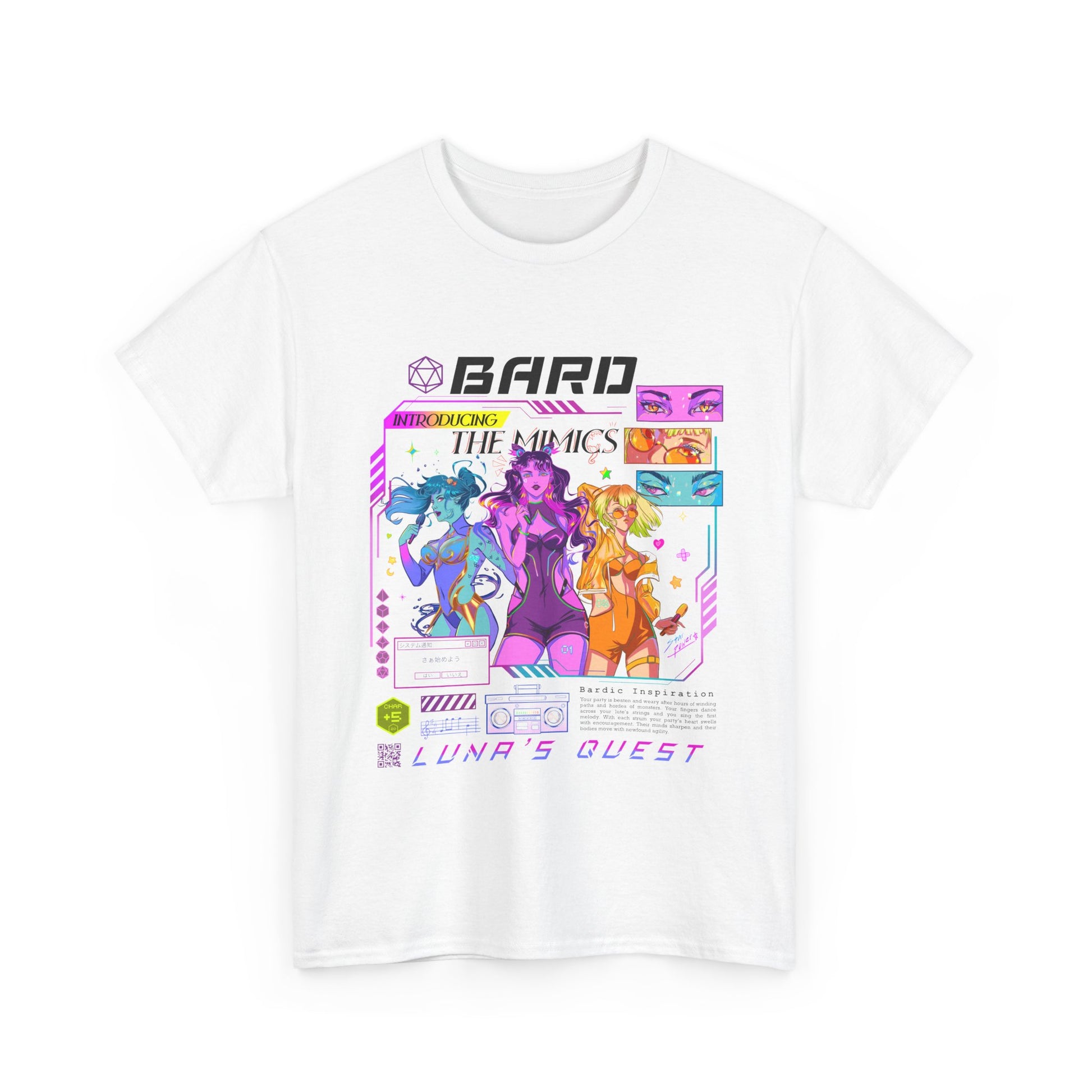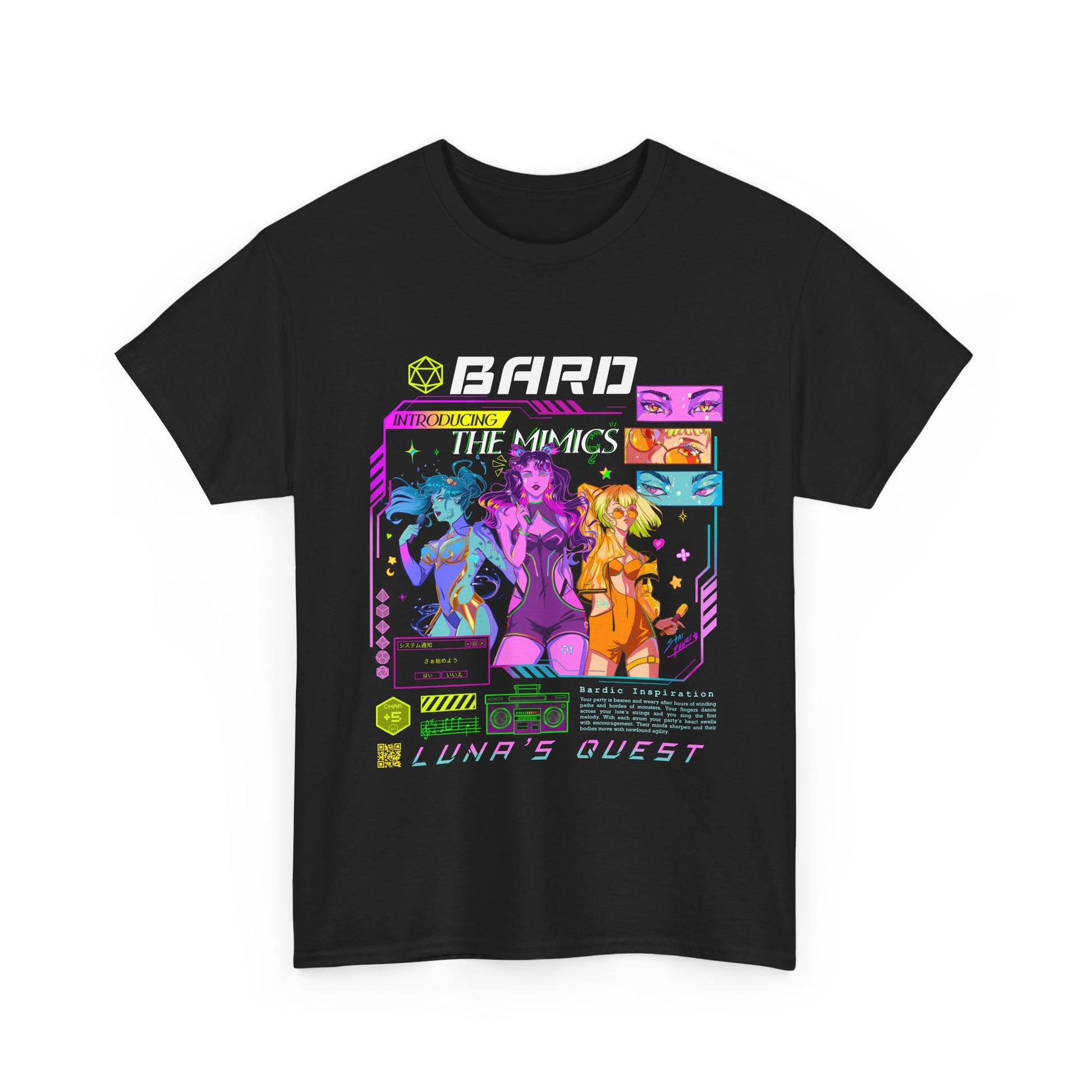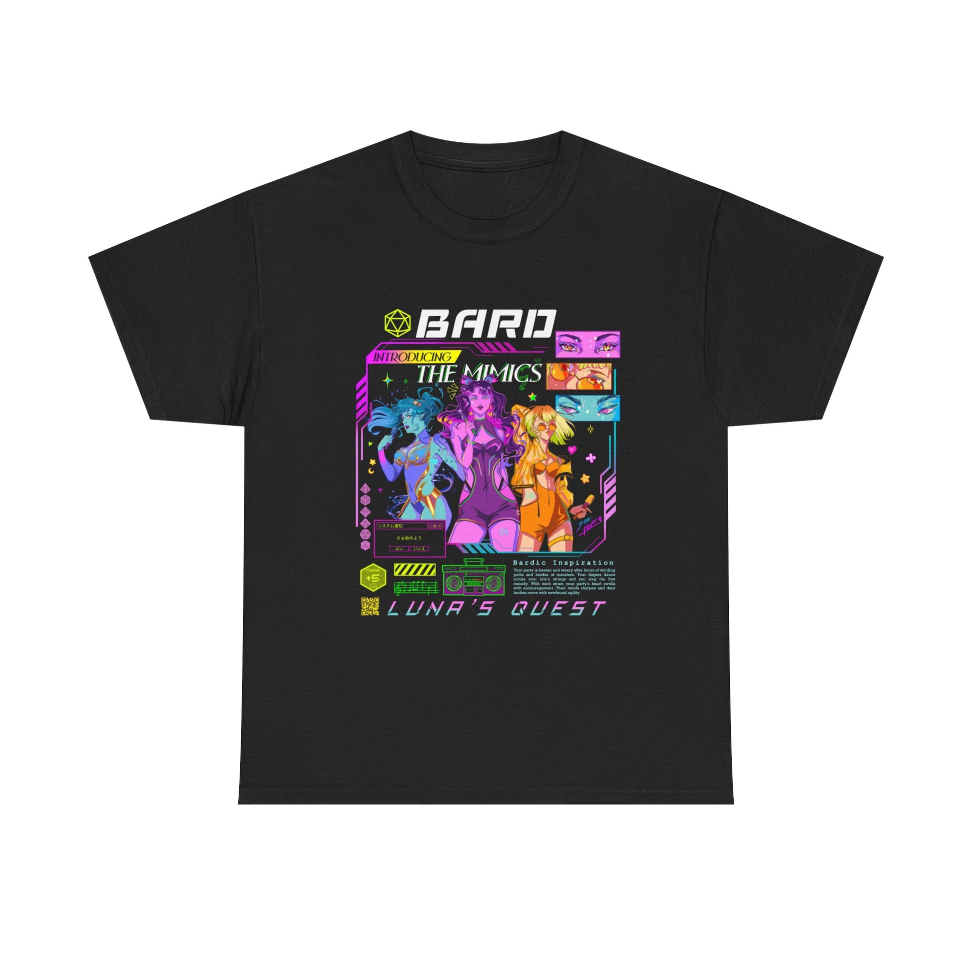 Get ready to absolutely slay your charisma checks with The Mimics Bard t-shirt, featuring three fierce Bards styled like your fave K-pop and J-pop idols. With vivid colors, fierce poses, and pop-concert-worthy flair, this anime-inspired D&D shirt is a love letter to chaotic good energy, high rolls, and high notes. This design bursts with vivid colors and enough stage presence to charm a dragon and make a mimic blush. Each Bard is dripping in confidence, magic, and pop-star energy — because why cast Inspire Courage when you can slay?